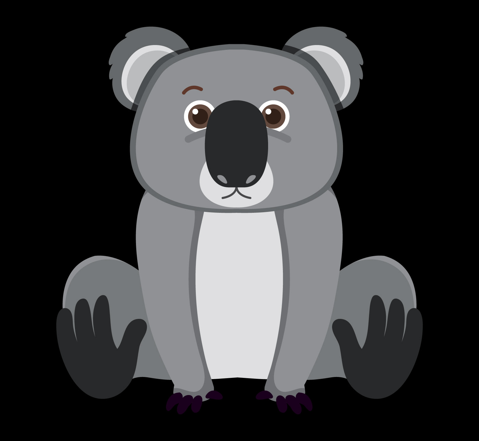 To create the koala, I used an image from the Freepik database only as a visual reference. I observed the main shapes of the animal and, from that, designed my own character from scratch using graphic forms, giving it a more rounded and stylized look.